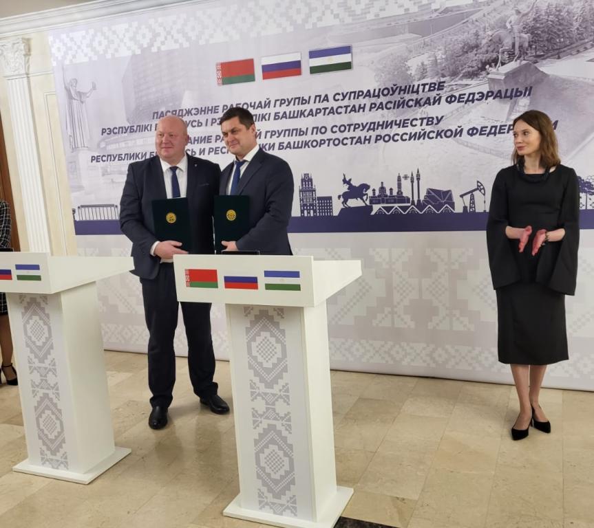 Представители республик подписали договор в Минске. В рамках визита делегации Башкирии в столицу Белоруссии между республиками было подписано соглашение о поставках в российский регион машинкомплектов для жаток.