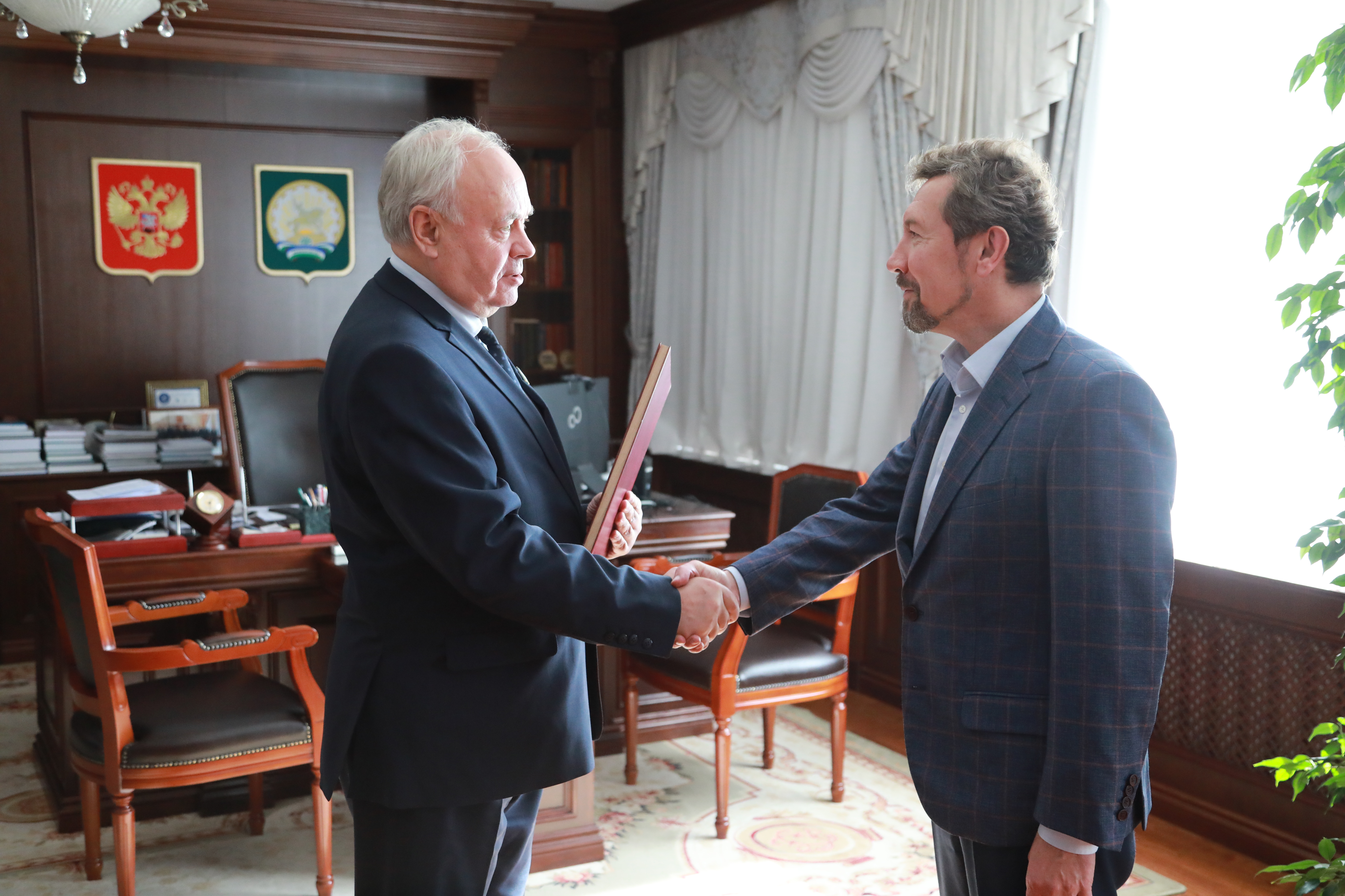 Председатель Государственного Собрания – Курултая Республики Башкортостан Константин Толкачев вручил Почетную грамоту республиканского парламента за многолетний добросовестный труд и активную общественную деятельность Владимиру Балабанову.