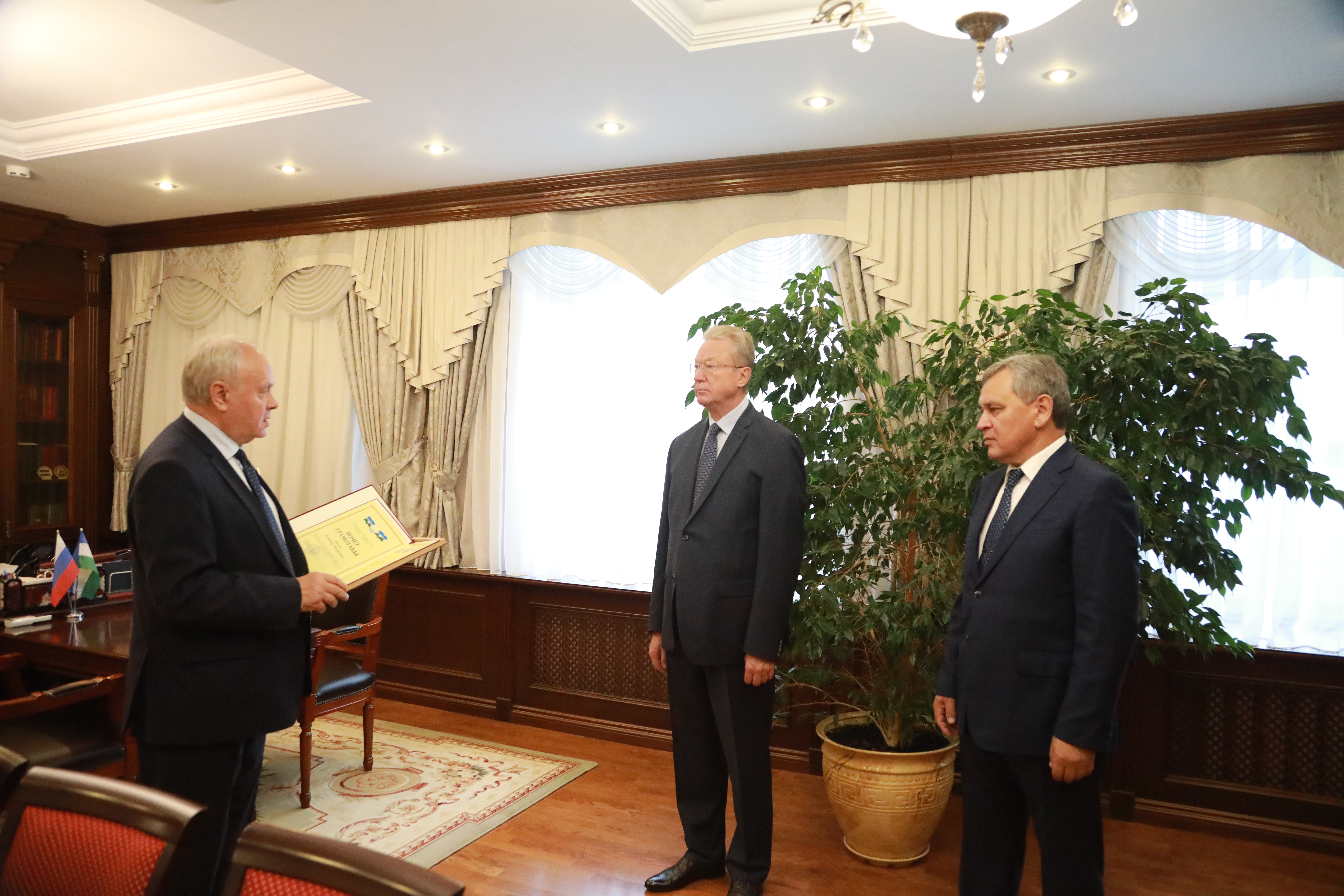 Константин Толкачев вручил Почетную грамоту заместителю Председателя Конституционного совета Республики Башкортостан Владимиру Крылову