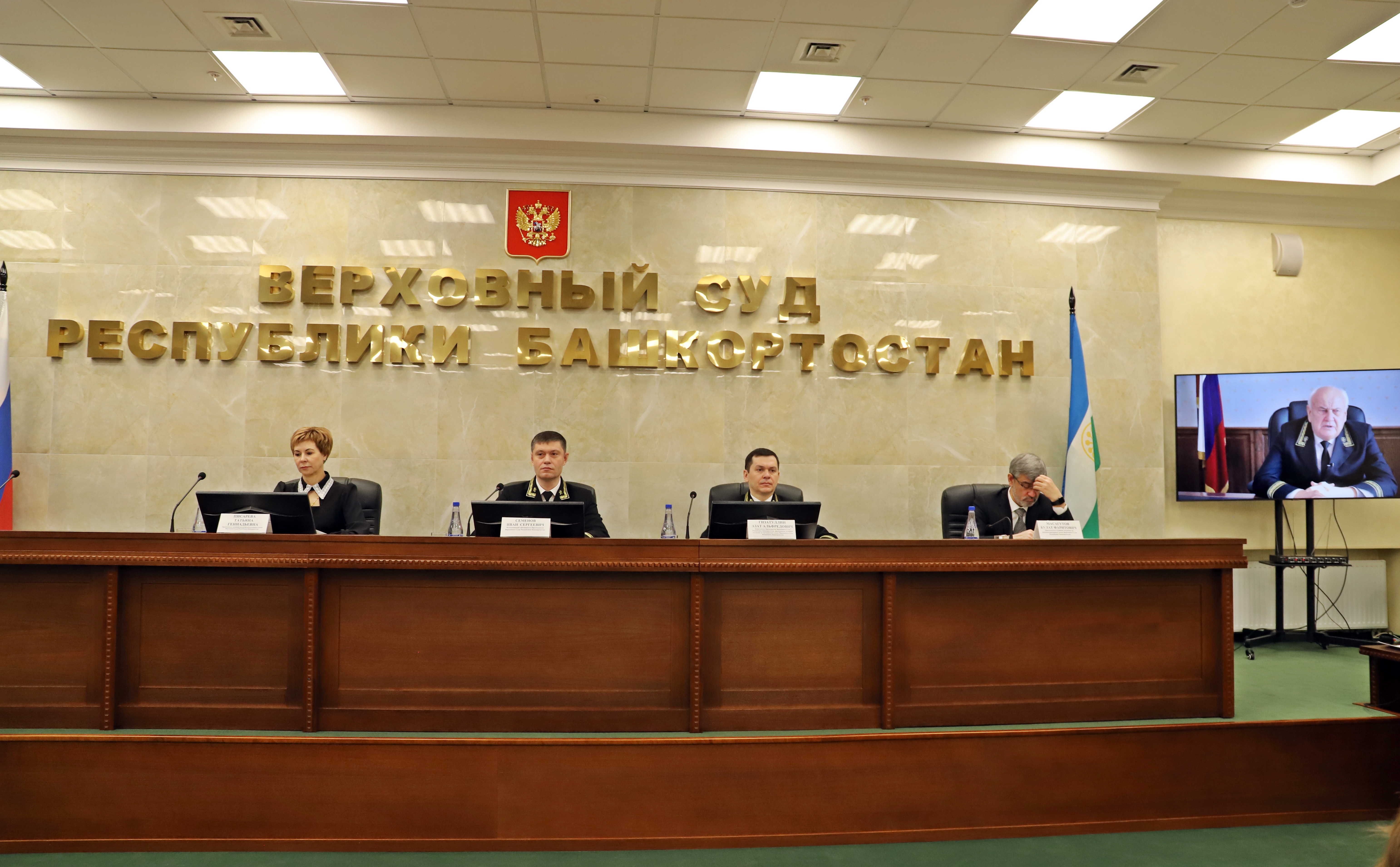 17 февраля 2023 года прошло общее собрание судей Верховного Суда Республики Башкортостан по итогам работы в 2022 году. В нем приняли участие исполняющий обязанности Председателя суда Иван Семенов, заместитель Председателя Верховного Суда Азат Гизатуллин, председатель судебной коллегии по уголовным делам Татьяна Писарева, председатель судебной коллегии по административным делам Булат Масагутов, судьи и работники аппарата Верховного Суда.