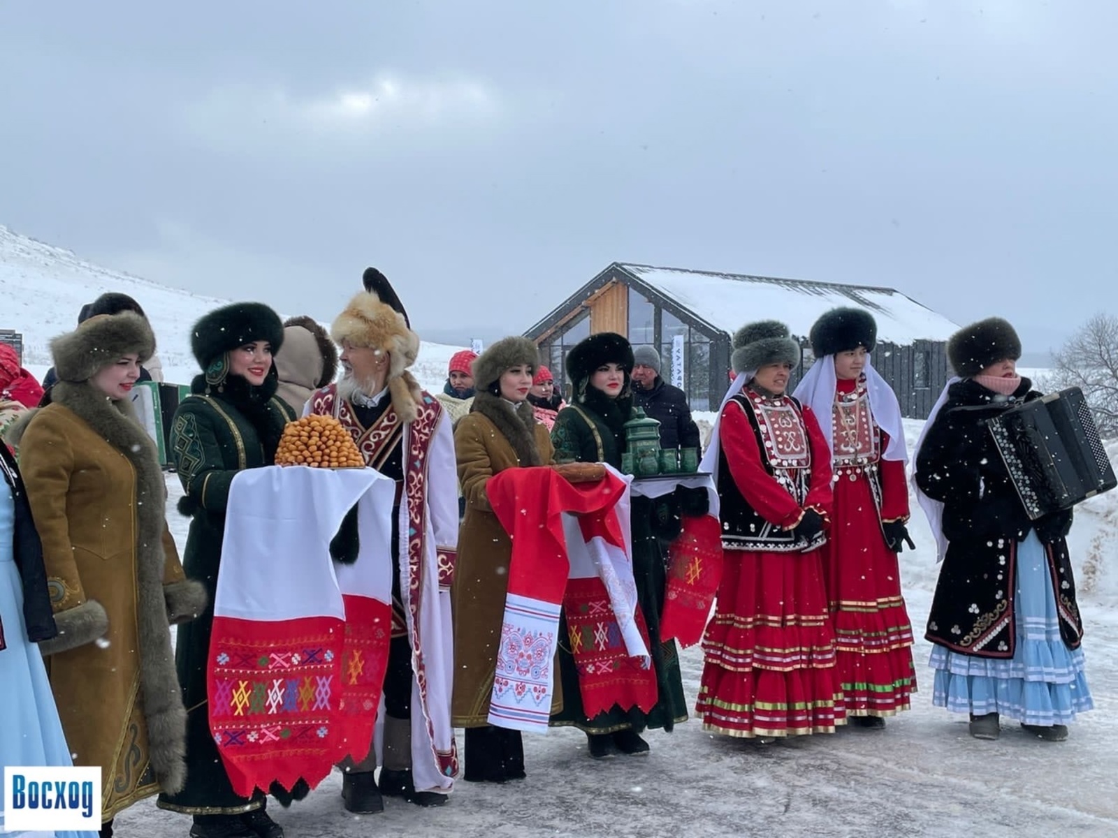 Начало праздника выдалось морозным, но организаторы хорошо постарались: гостей встречали артисты песнями, вкусный плов и ароматный чай.