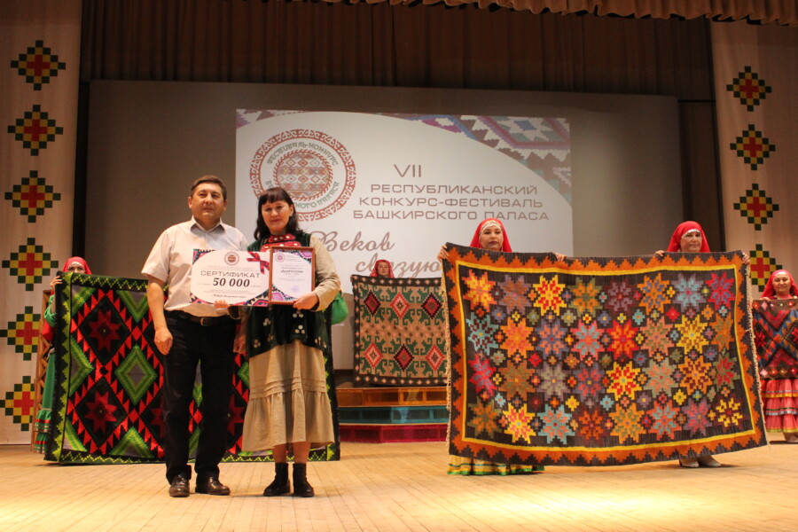 Обладателем Гран – при VII Республиканского фестиваля конкурса башкирского паласа «Веков связующая нить» стала Уметбаева Гульчачак Равиловна (Абзелиловский р-н)