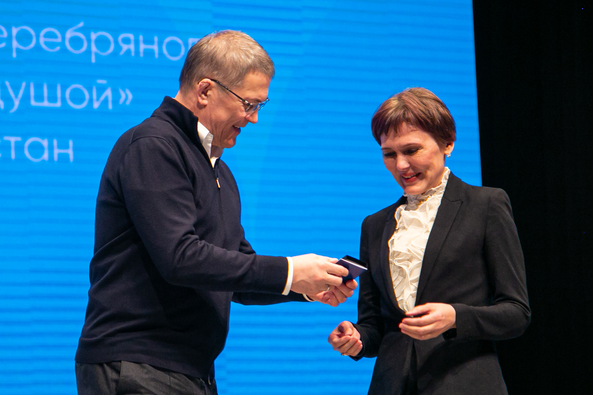 В рамках торжественной части Радий Хабиров вручил почётные знаки Главы РБ «Доброволец (волонтёр) Республики Башкортостан» . Эта награда была учреждена в 2020 году. В число активных участников волонтерского движения, первыми удостоенных данного почетного знака, вошла руководитель центра «серебряного» волонтерства «Молоды душой», к.п.н., доцент кафедры теорий и методик начального образования БГПУ им. М. Акмуллы Екатерина Александровна Савельева .