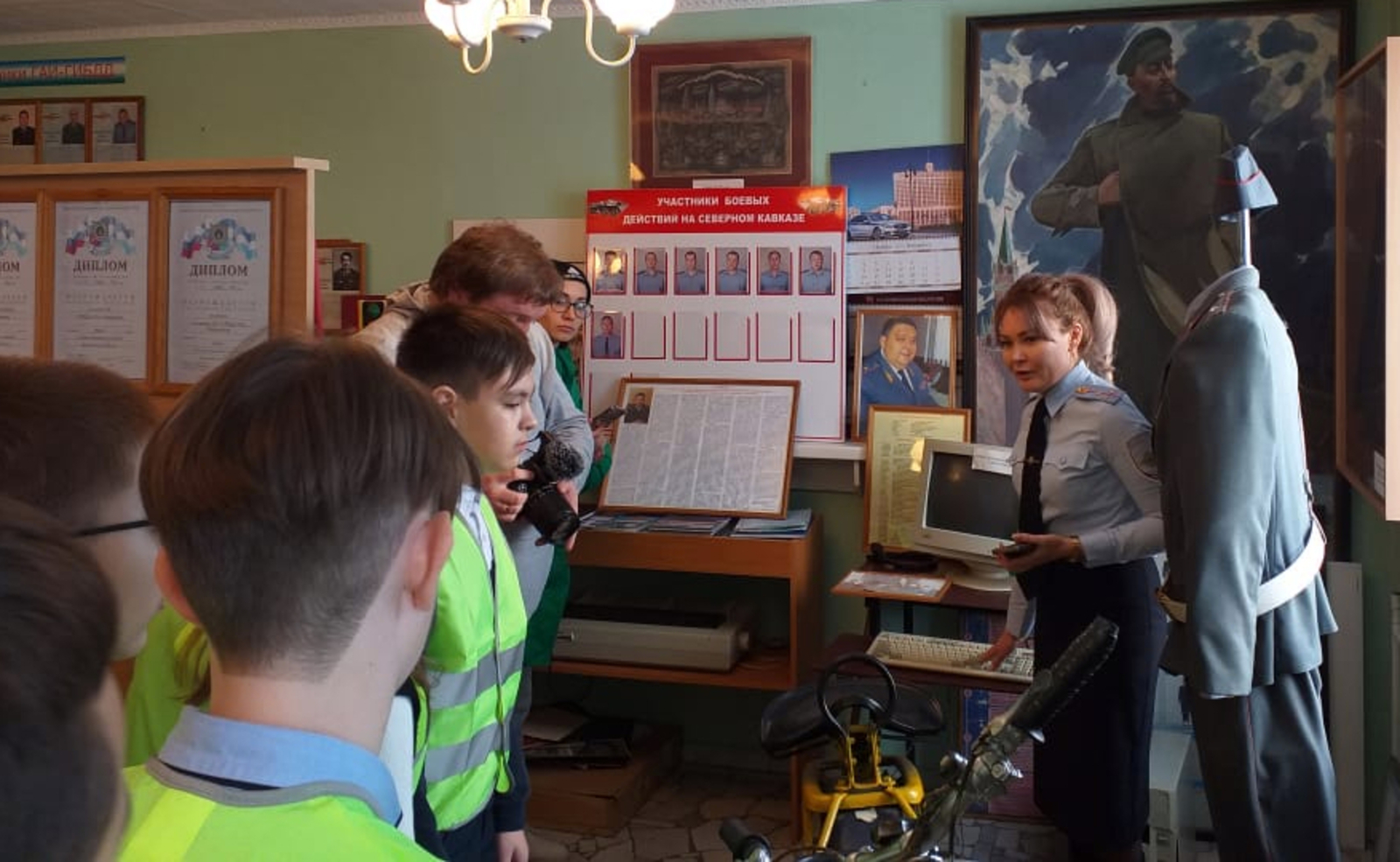 Далее участники мероприятия направились в музей, где ребятам были продемонстрированы тематические экспонаты, различные документы, они ознакомились с историей становления службы ГАИ. Ребята задавали интересующие их вопросы и получали на них исчерпывающие ответы. Юные гости посетили регистрационно-экзаменационное подразделение, где им рассказали про процесс регистрации автомототранспортного средства, каким образом сдается экзамен на знания правил дорожного движения.