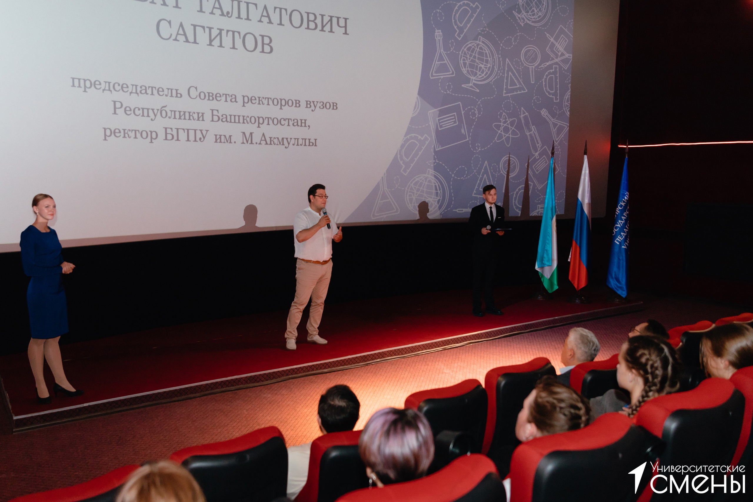 Вечером 8 августа в кинотеатре «Родина» состоялось торжественное открытие «Университетской смены». По традиции Акмуллинского университета на открытии прозвучали гимны Российской Федерации и Республики Башкортостан.