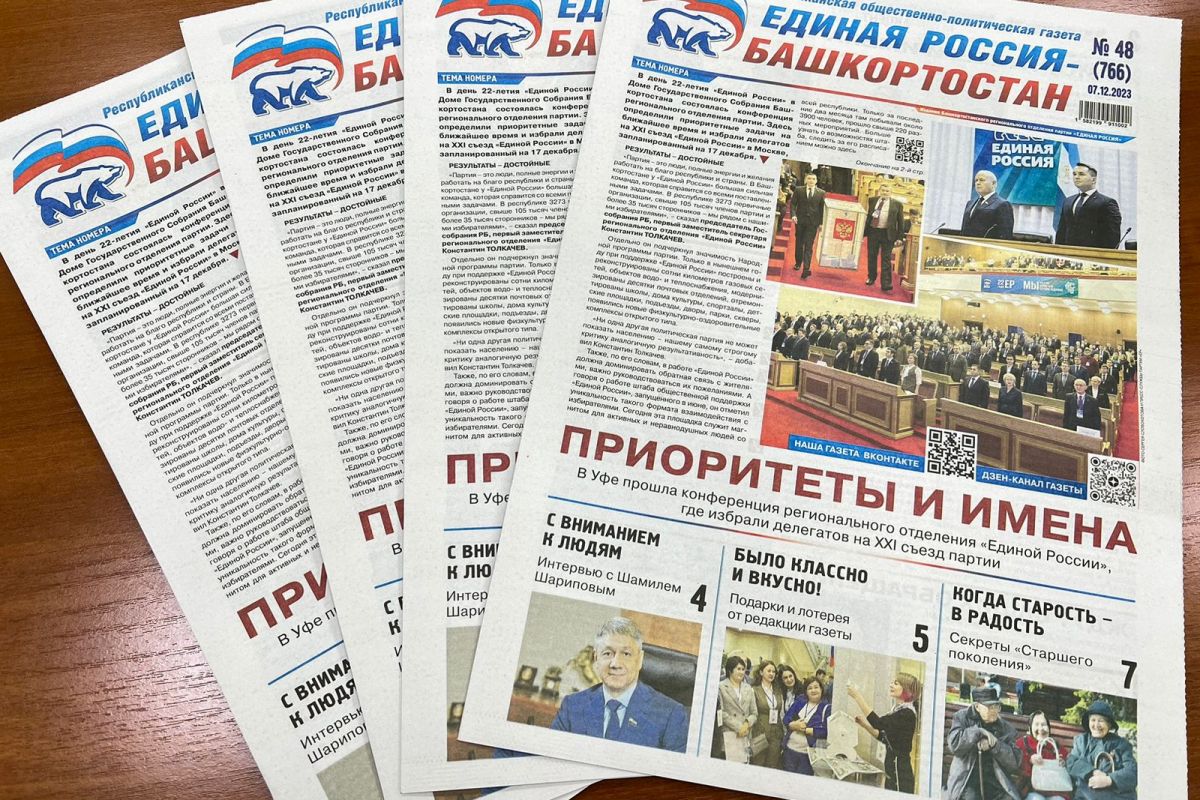 Вышел свежий номер газеты «Единая Россия – Башкортостан». В день 22-летия «Единой России» в Доме Государственного Собрания Башкортостана состоялась конференция регионального отделения партии.