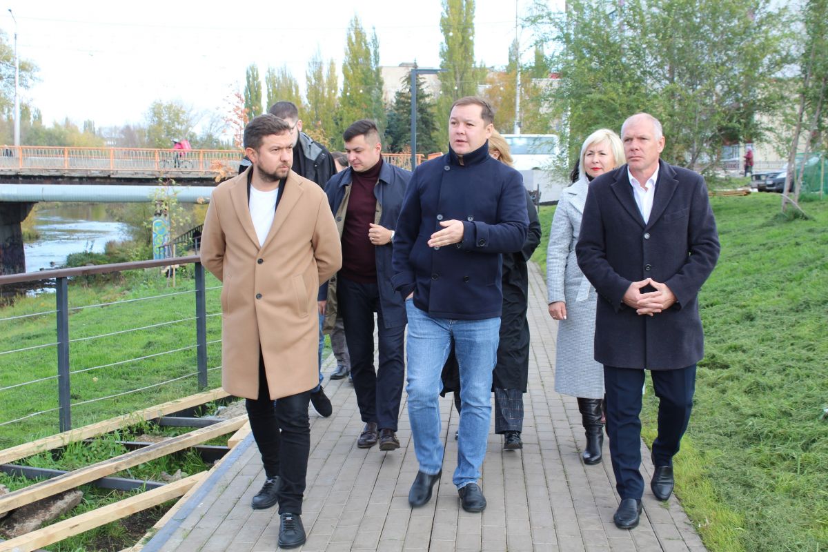 В настоящее время на набережной обустроены тротуарные дорожки, установлены бордюры, сделано наружное освещение. Помимо этого, подготовлена площадка для лестницы, ведущей к реке. Работы по благоустройству территории идут в соответствии с графиком, к 1 ноября текущего года должны быть полностью завершены.