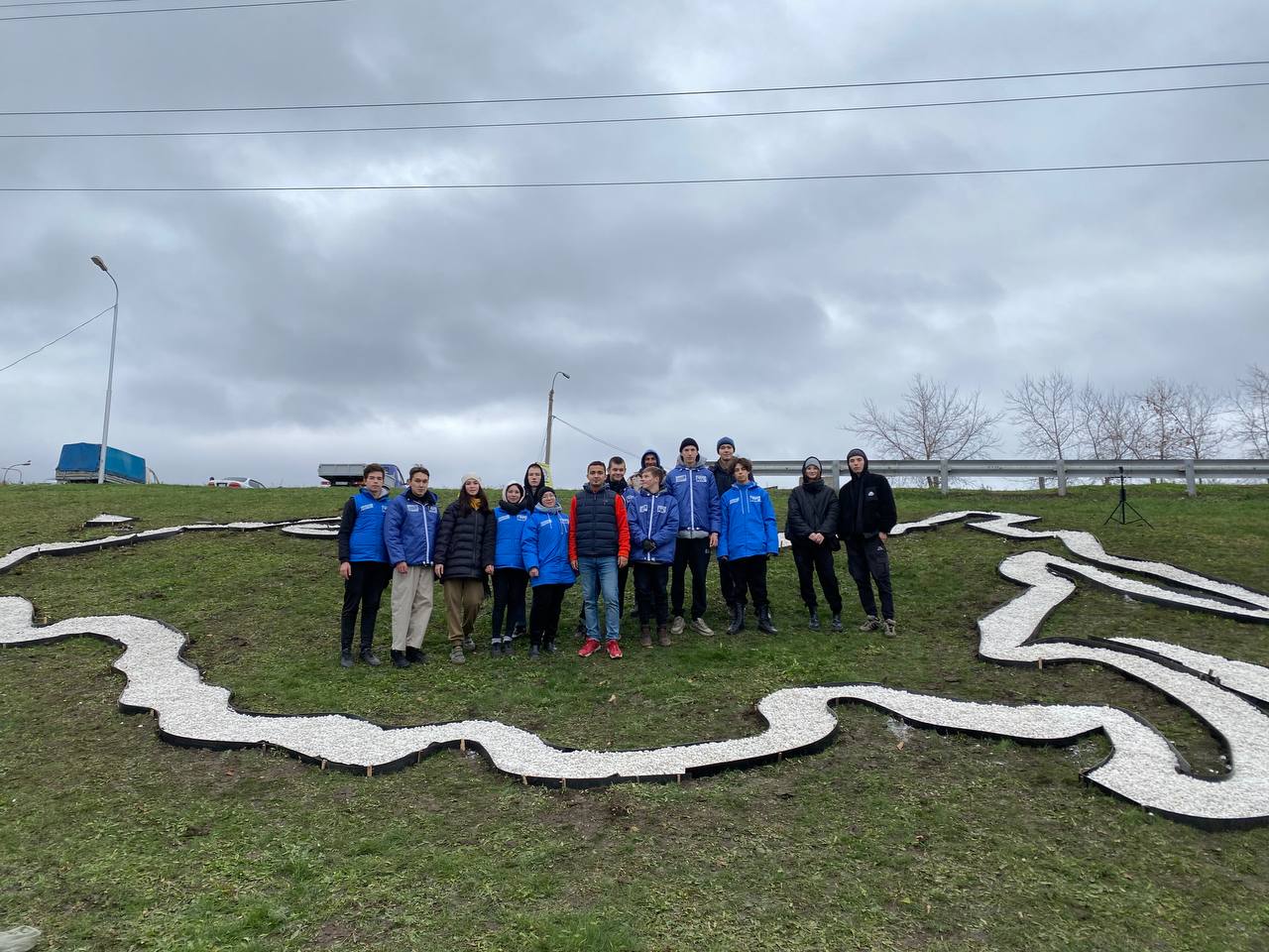 Активисты выложили из мраморной крошки контур карты России, который размещен на площади 120 м2. Работы длились более 6 часов и потребовали 2.5 тонны материалов. Объект виден всем водителям, проезжающим мимо него на пересечении проспекта Салавата Юлаева и улицы Лесотехникума.