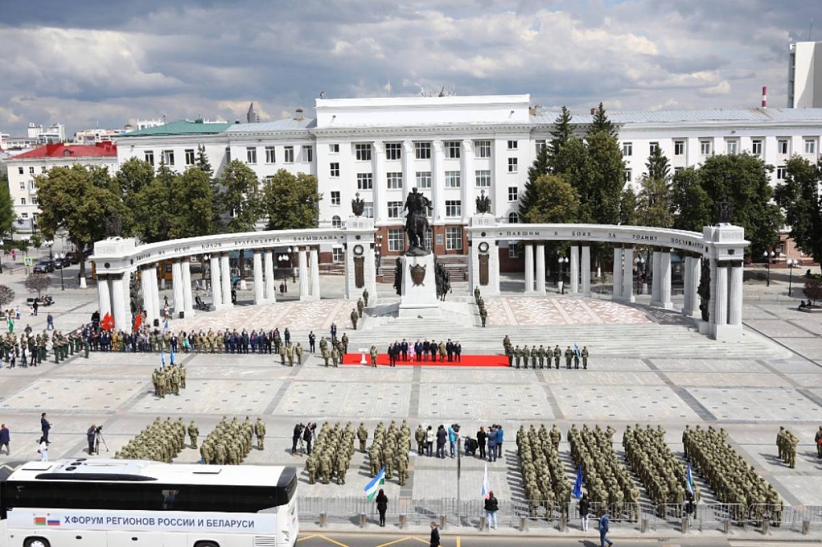23 июня на Советской площади Уфы Секретарь Регионального отделения партии «Единая Россия», Глава Республики Башкортостан Радий Хабиров принял участие в церемонии отправки к месту боевого слаживания трёх именных подразделений мотострелкового полка «Башкортостан».