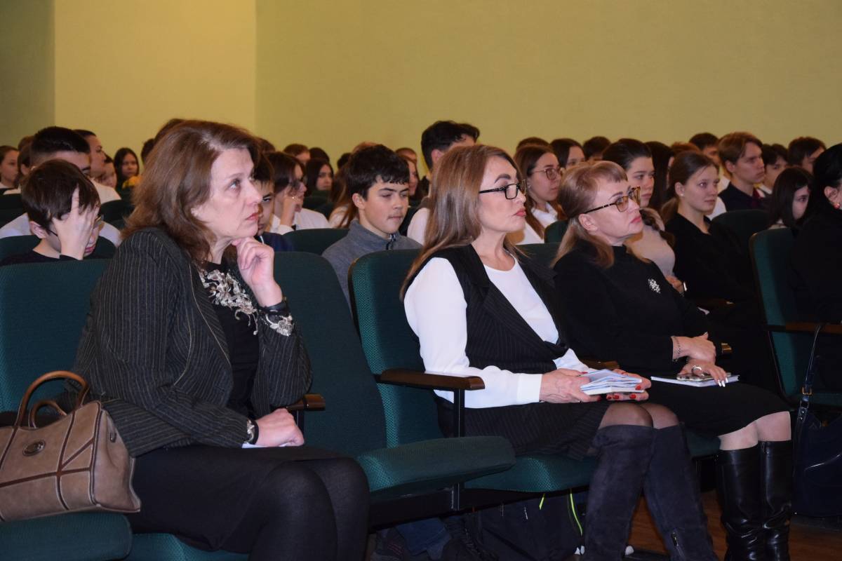 В зале собрались школьники, представители управления образования, родственники и знакомые ветерана.