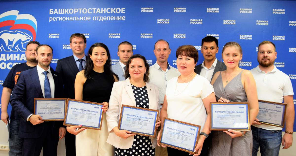 Кроме того, за выполнение региональных событий благодарственным письмом были награждены координатор федерального партийного проекта «Историческая память» в Республике Башкортостан, первый заместитель председателя Горсовета Уфы Александр Мельников и секретарь местного отделения партии «Единая Россия» Дюртюлинского района Гульназ Галимова.