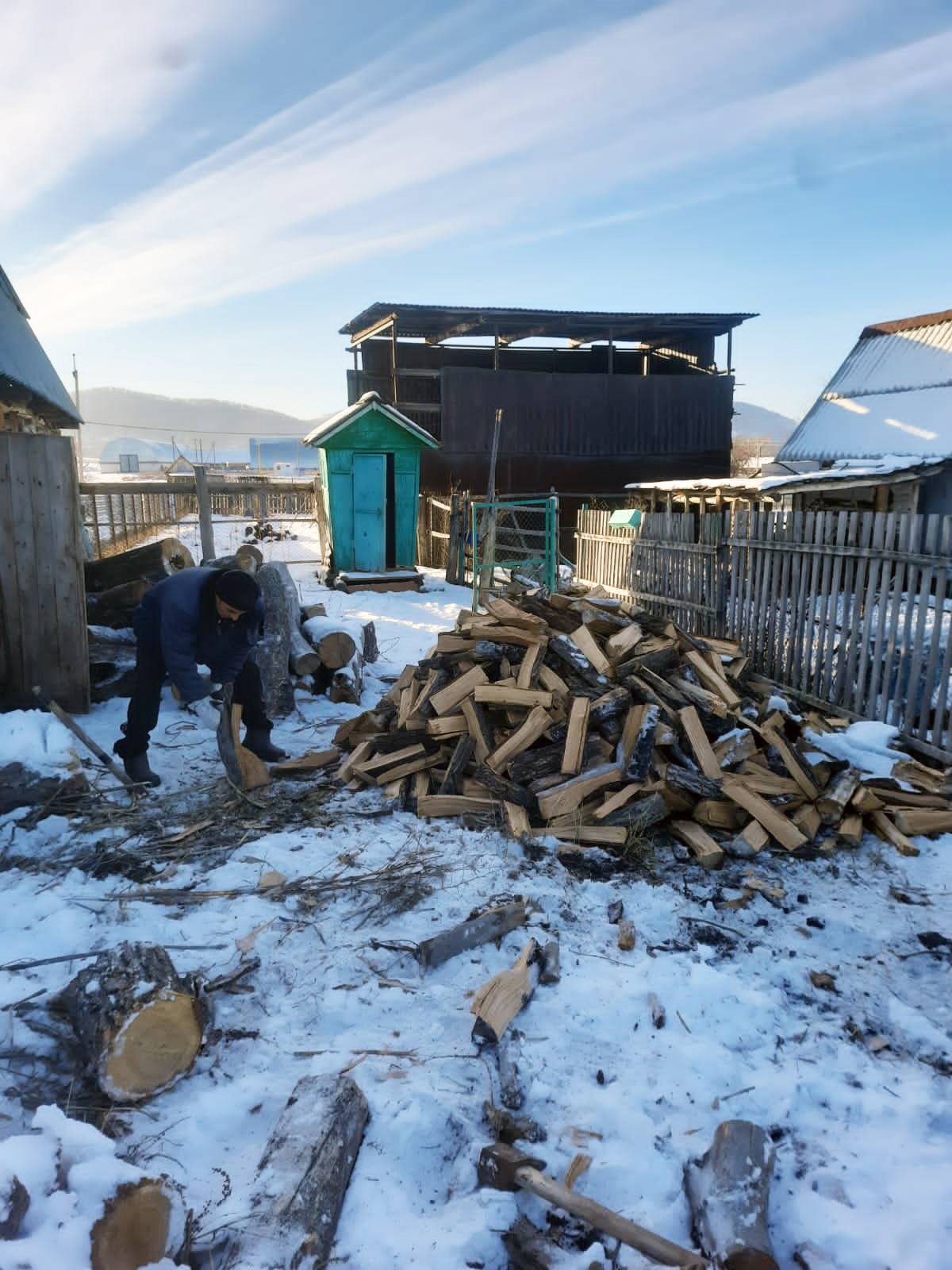 Волонтеры Штаба во главе с секретарем первичного отделения «Казанбулакское» незамедлительно отозвались на просьбу и накололи необходимое количество дров.