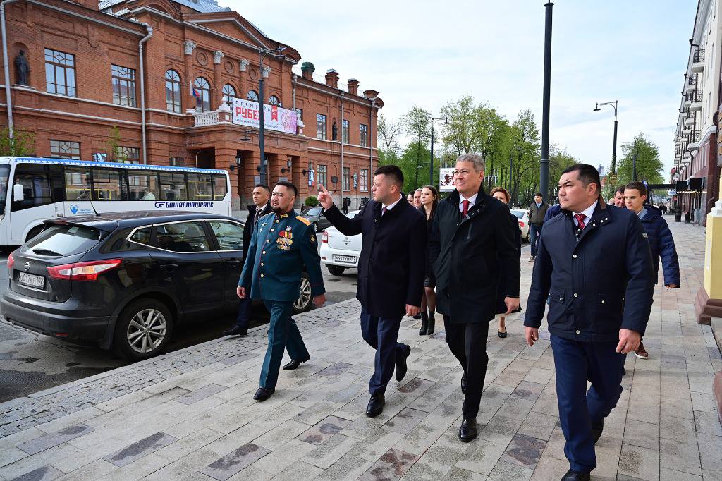 Глава Башкортостана Радий Хабиров 9 мая в Уфе совершил пешую прогулку по улице Ленина от ГКЗ «Башкортостан» до сада имени Сергея Аксакова. Руководитель региона ознакомился с ходом благоустройства общественных пространств столицы республики к празднованию 450-летнего юбилея.