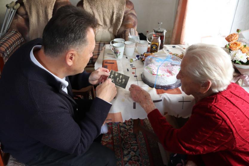 Именинницу поздравил глава Администрации Орджоникидзевского района Альберт Маликов. Вместе с добрыми словами, пожеланиями и вкусными и тёплыми подарками он передал долгожительнице поздравления Президента России Владимира Путина и Главы Республики Башкортостан Радия Хабирова.