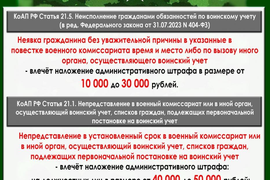 - а тем, кто не предоставит в установленный срок в военкомат или иной орган воинского учета списков граждан, подлежащих первоначальной постановке на воинский учёт, светит: