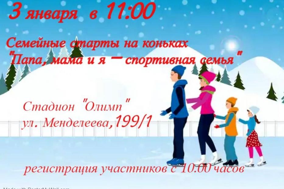 3 января на стадионе «Олимп» запускаем семейные старты на коньках «Папа, мама и я – спортивная семья»!