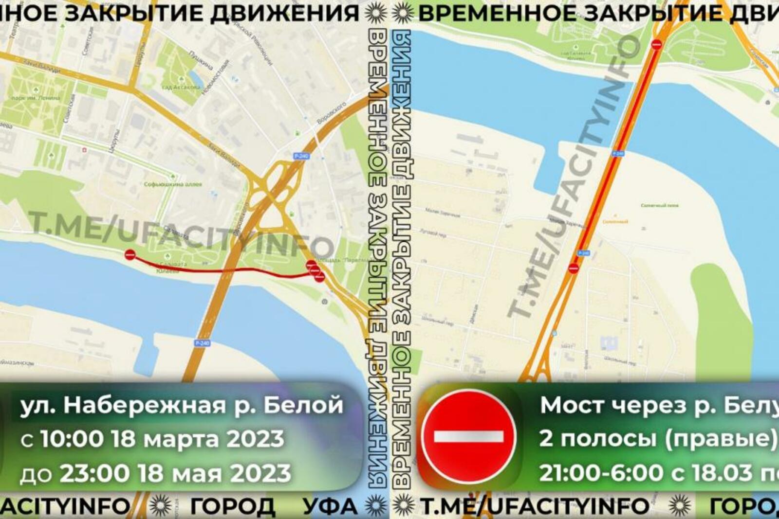 В Уфе на ночь будут закрывать движение по старому мосту через Белую