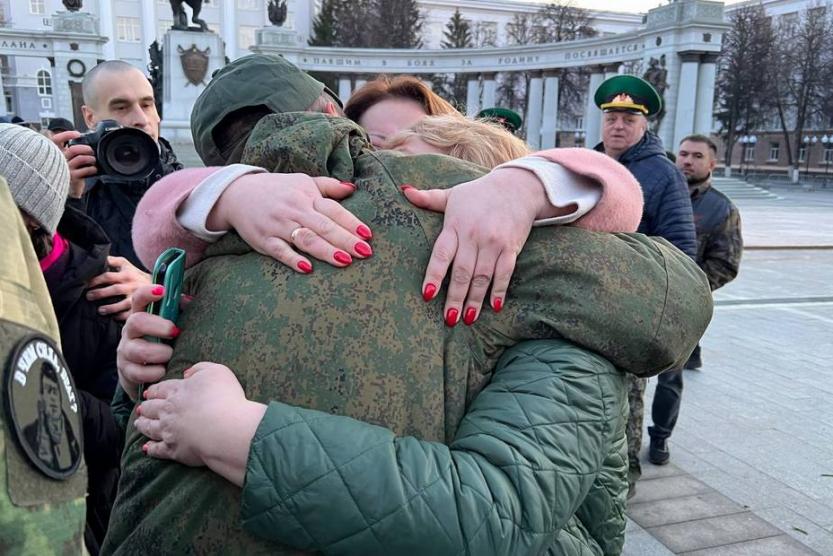 Ранним утром 2 апреля в Уфе торжественно встретили мобилизованных, приехавших домой в отпуск.