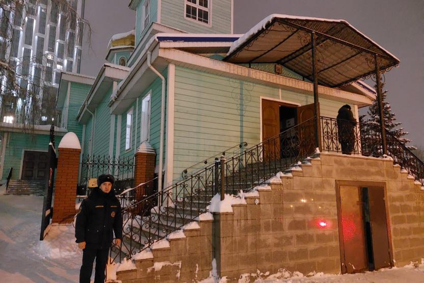 Накануне праздников был проведен обход церквей и храмов, осмотрено состояние путей эвакуации, проверена работоспособность средств противопожарной защиты, а также наличие первичных средств пожаротушения. На каждом объекте с настоятелями и обслуживающим персоналом проведены инструктажи по мерам пожарной безопасности.