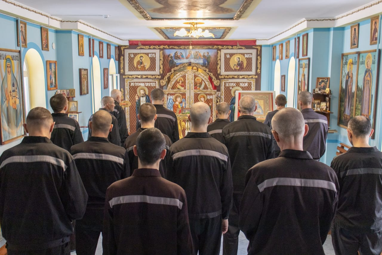 За богослужением молись осужденные колонии, которые смогли причаститься Святых Христовых Таин.