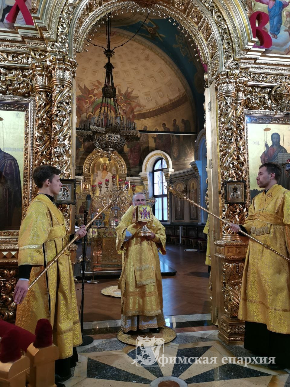 15 октября 2023г, в Неделю 19-й по Пятидесятнице и день памяти свв. сщмч. Киприана, мц. Иустины и мч. Феоктиста, св.прав. воина Феодора Ушакова, св. блгв. вел. кн. Анны Кашинской, митрополит Уфимский и Башкортостанский НИКОН возглавил Божественную литургию в кафедральном соборе Рождества Богородицы г.Уфы. Владыке сослужило соборное духовенство. Диаконский чин возглавил соборный протодиакон Рустик Латыпов. Пел хор под управлением З.Закировой.