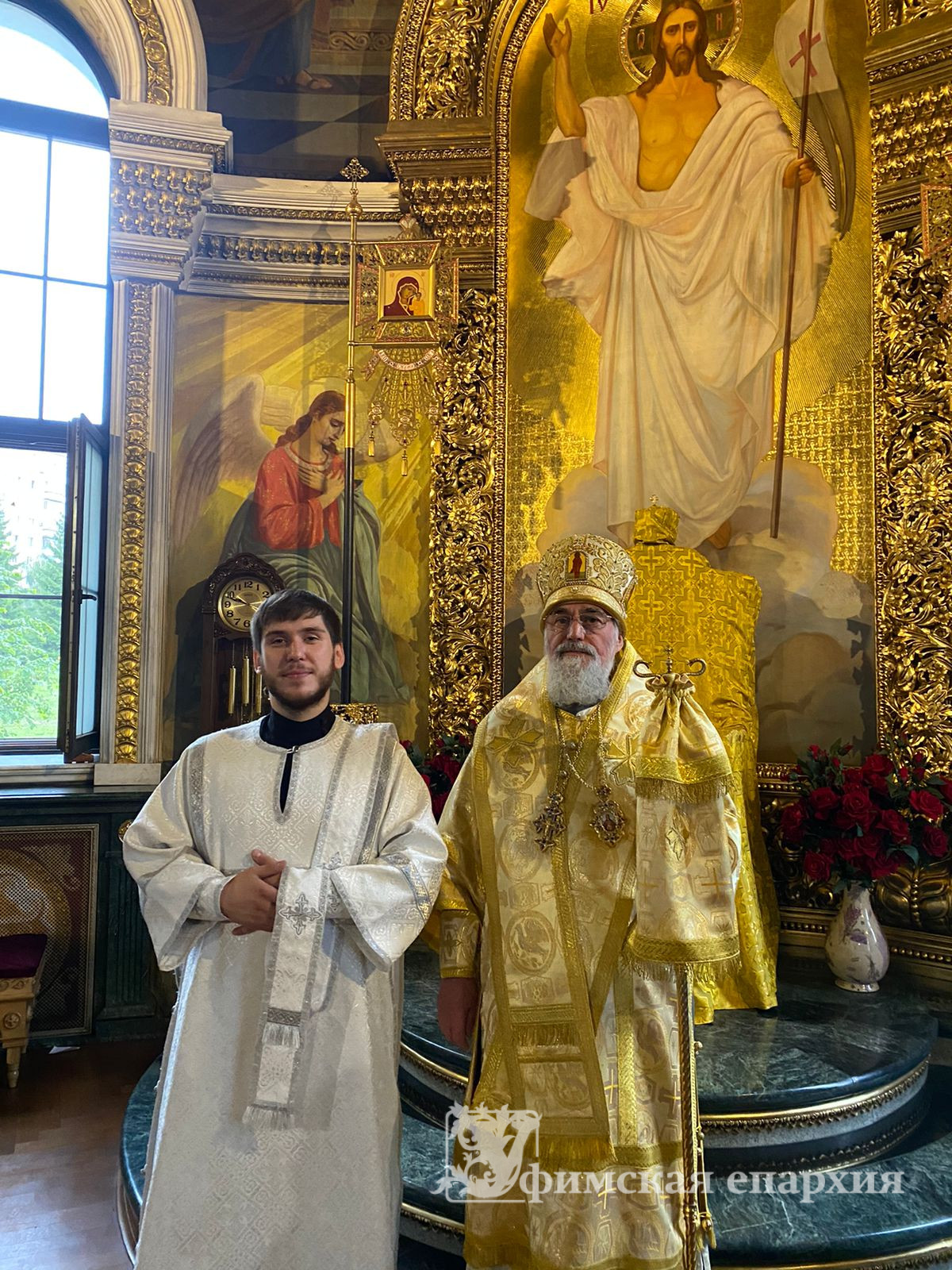 После освящения Святых Даров, митрополит Уфимский и Башкортостанский НИКОН рукоположил иподиакона Артемия СИЗОВА в сан диакона к кафедральному собору Рождества Богородицы г.Уфы.