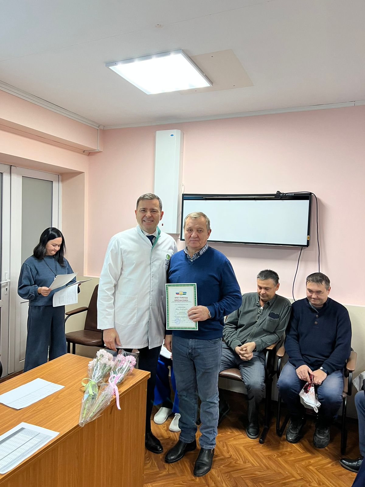 Главный врач Булатов Шамиль Энгельсович поблагодарил водителей автохозяйства за добросовестный труд, пожелал им крепкого здоровья и благополучия.