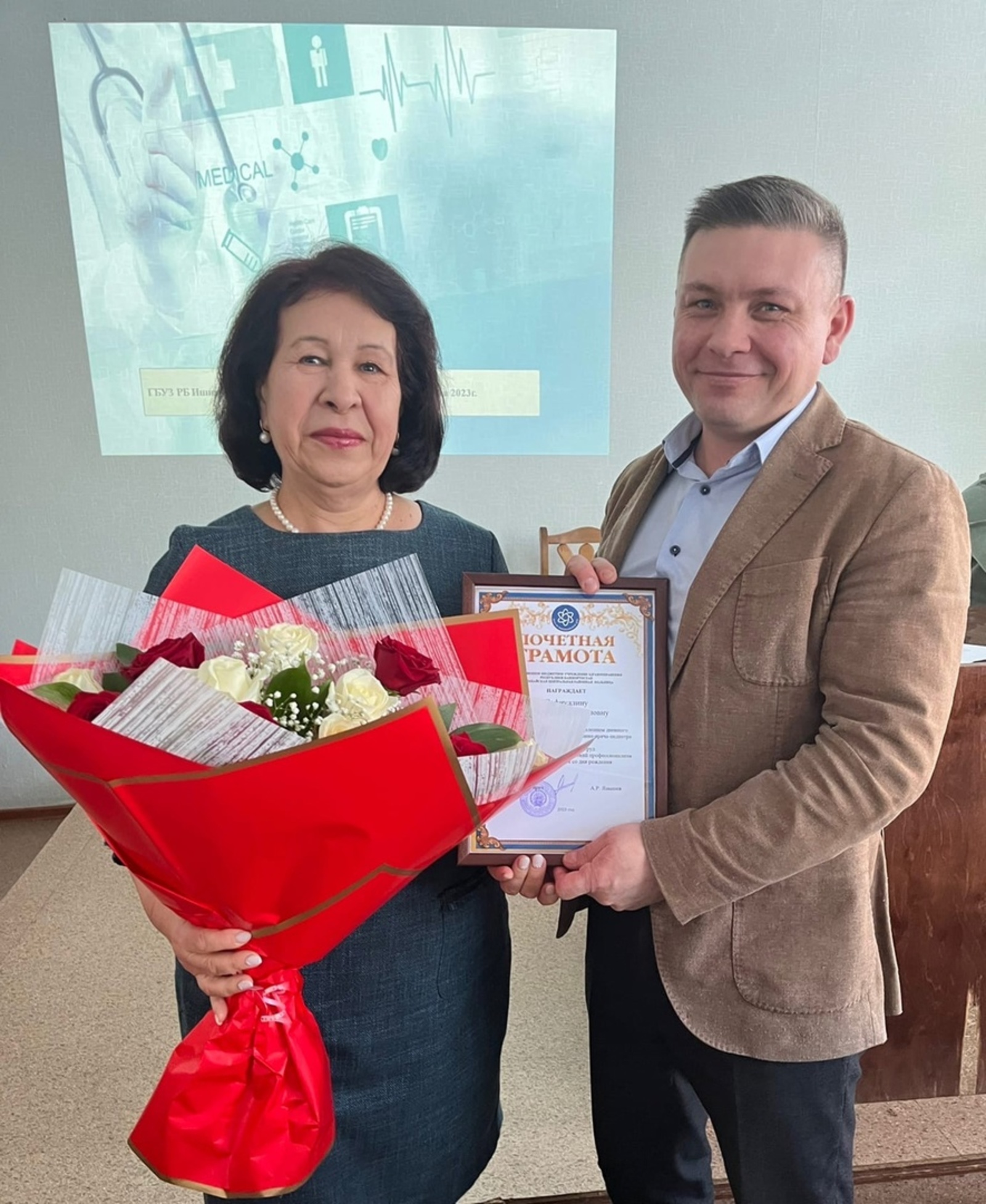 Также Алик Янышев в торжественной обстановке поздравил заведующую дневным стационаром при втором педиатрическом отделении Фанузу Камалетдиновну с днём рождения.
