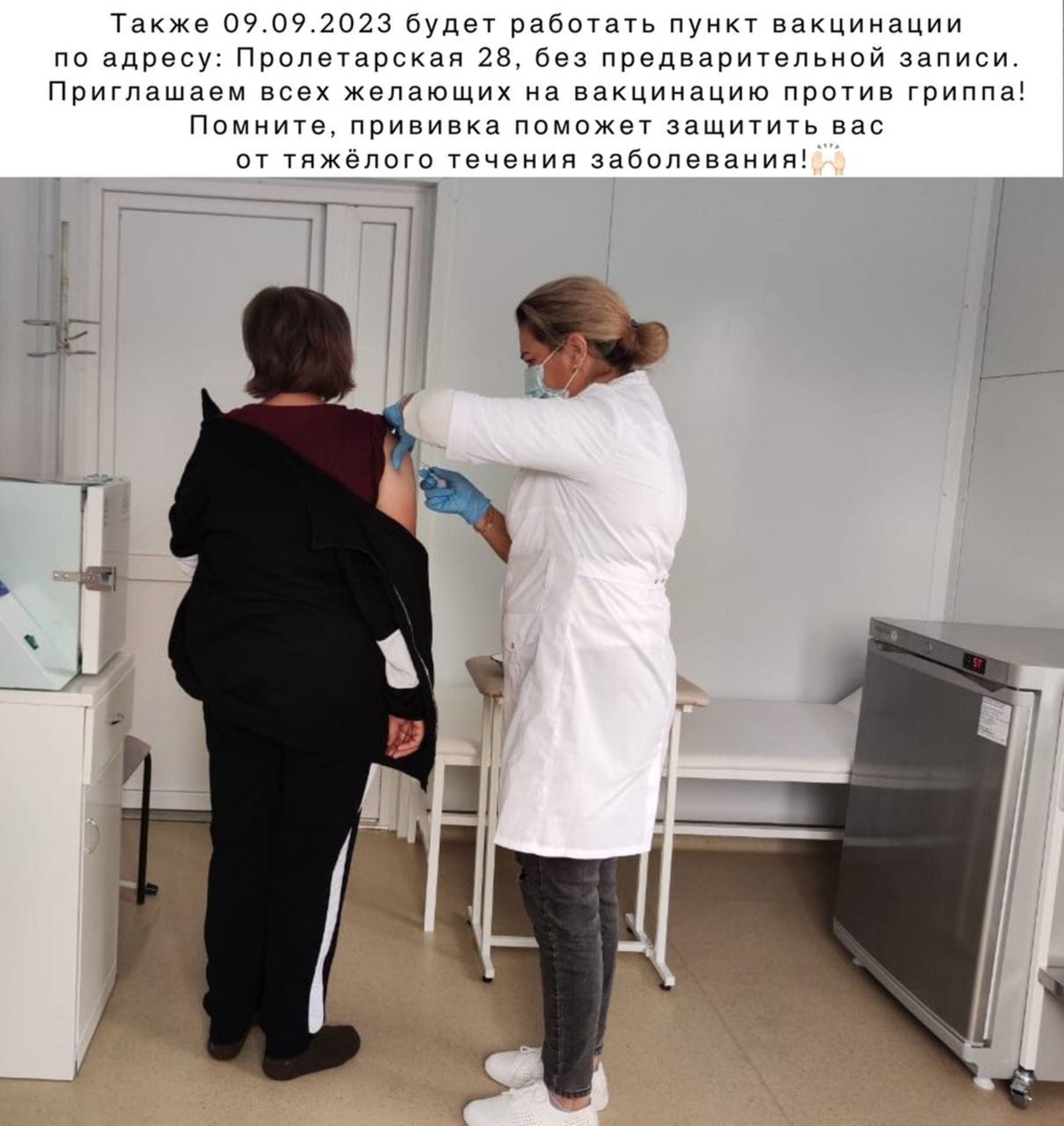 Также 9 сентября открыт пункт вакцинации против гриппа на улице Пролетарской, 28 – с 8 до 14 часов. Медики напоминают, что вакцина поможет защитить вас от тяжелого течения заболевания и последствий.