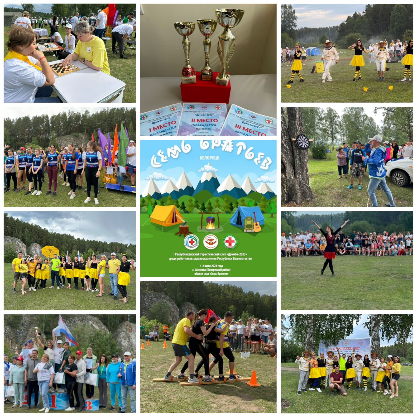 1-2 июля 2023 г. на поляне "7 братьев" около села Сосновка Белорецкого района прошел Первый республиканский туристический слёт работников здравоохранения Республики Башкортостан, организованный Республиканским профсоюзом здравоохранения, Минздравом при содействии Белорецкой ЦРКБ.