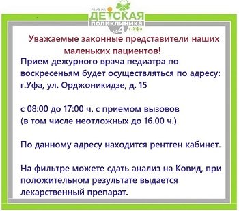 Прием педиатра по воскресеньям