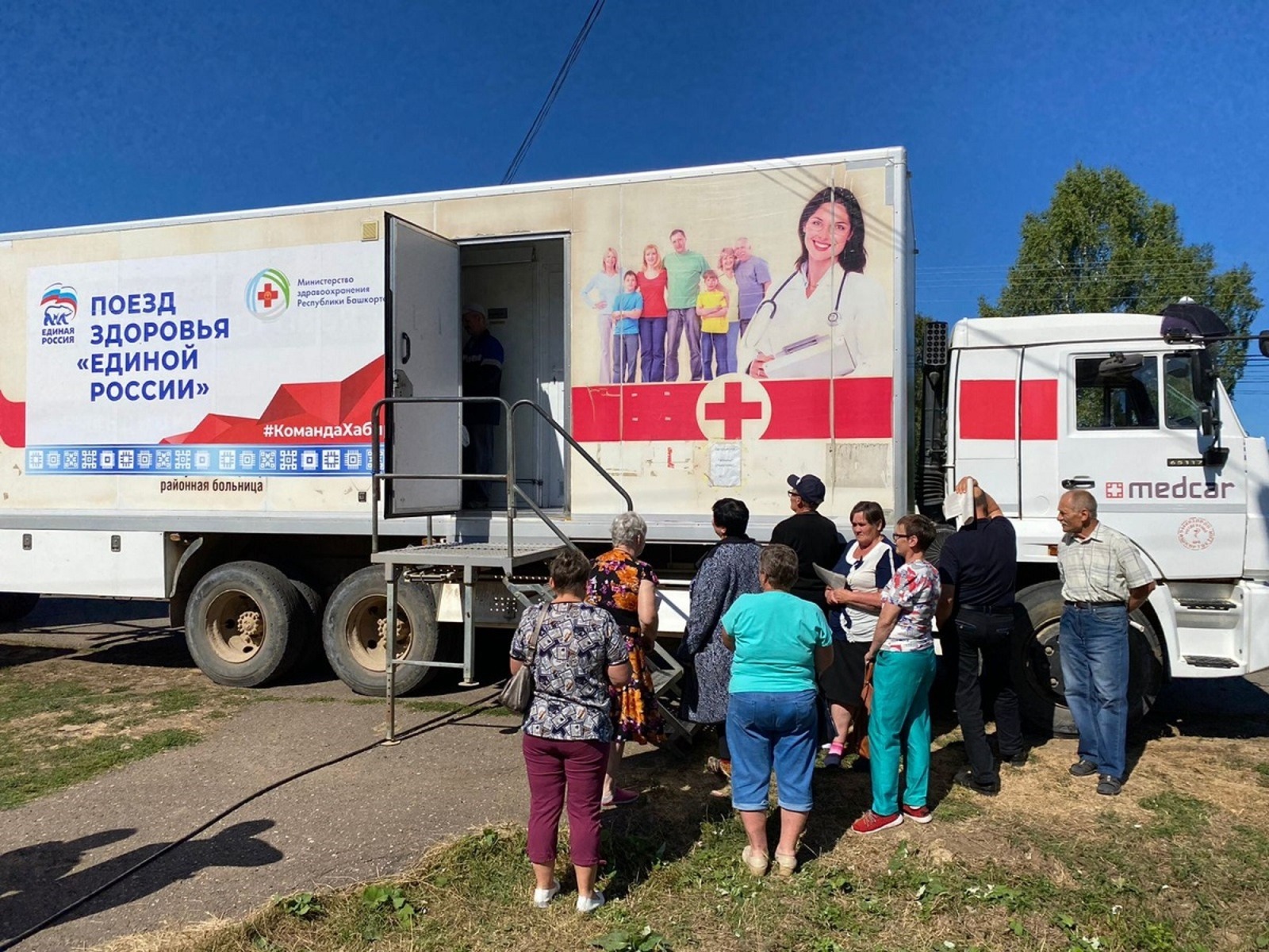 «Поезда здоровья» — бригады уфимских врачей, в том числе дефицитных узких специалистов, которые выезжают в сельскую местность для оказания медицинской помощи.