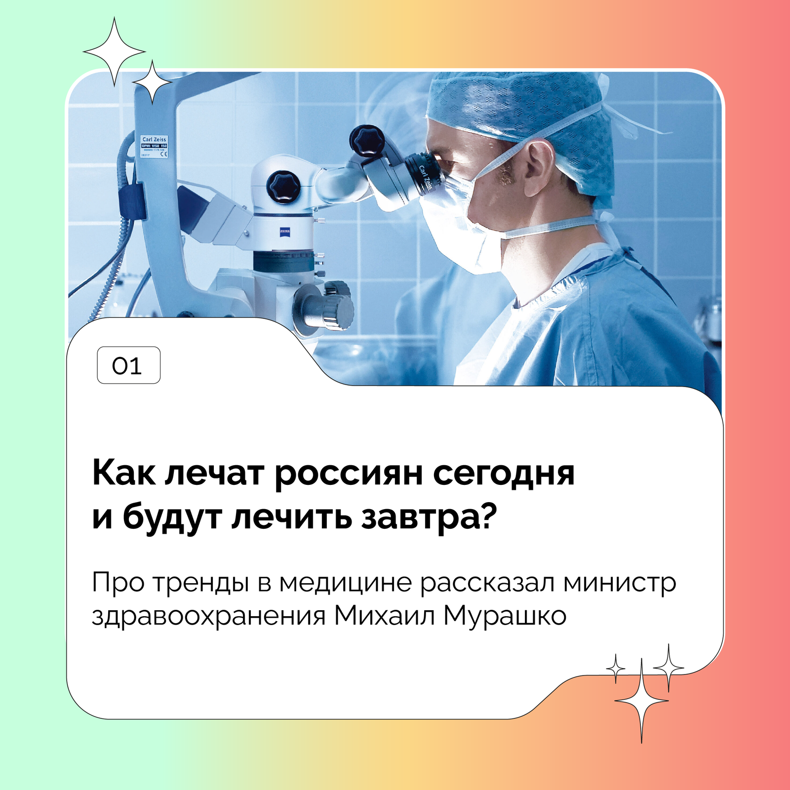 Министр также добавил, что сегодня - время перемен, когда идёт смена технологического уклада в медицине. Заключается это в нескольких ключевых вещах – в разработках в области синтетической биологии и клеточных технологий, в медицинской технике, в регенеративной медицине, внедрении искусственного интеллекта.