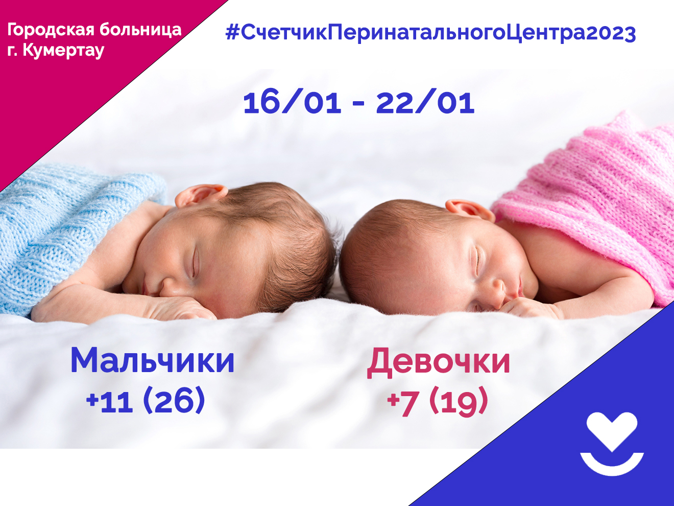 За прошедшую неделю в нашем перинатальном центре родилось 18 детей - 11 мальчиков и 7 девочек. Из #Кумертау 8 малышей - 6 мальчиков и 2 девочки. Остальные малыши из Кумертауского округа.