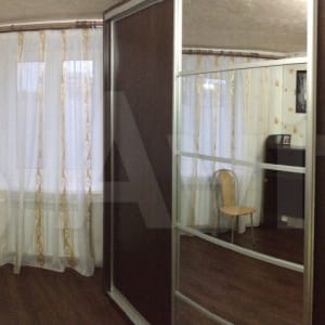 Двуспальная кровать (140см) с бра в изголовье кровати, диван раскладывается, 3 стула, стол на кухне.